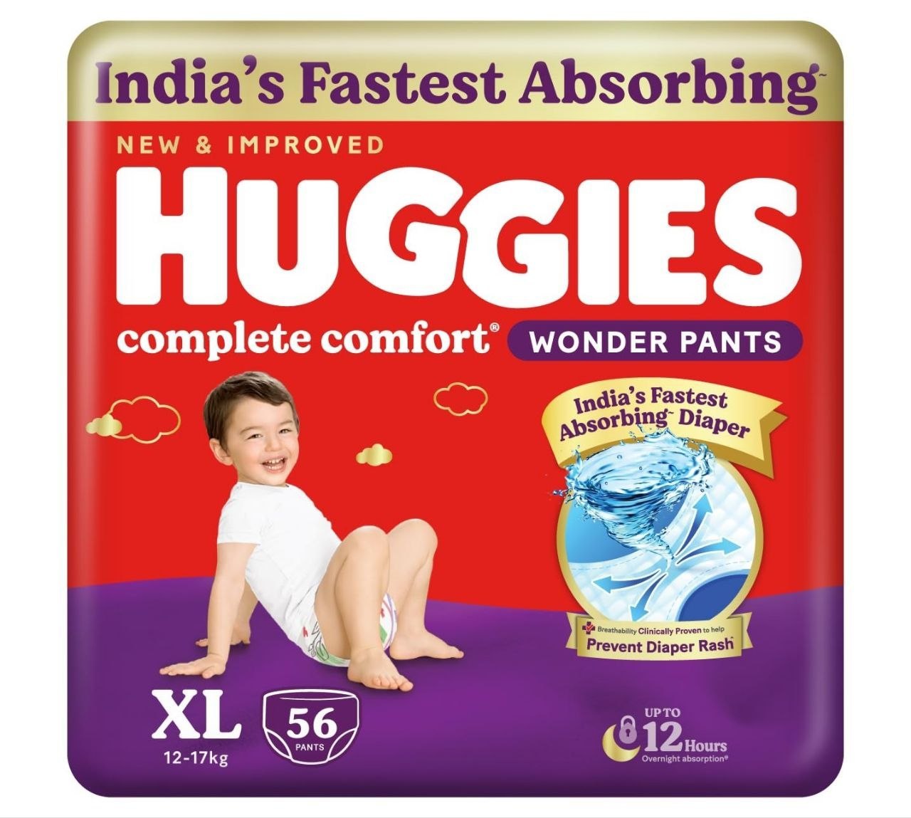 Huggies Complete Comfort Wonder Pants | Pant Style Baby Diapers Extra Large Size (XL), 56 Count