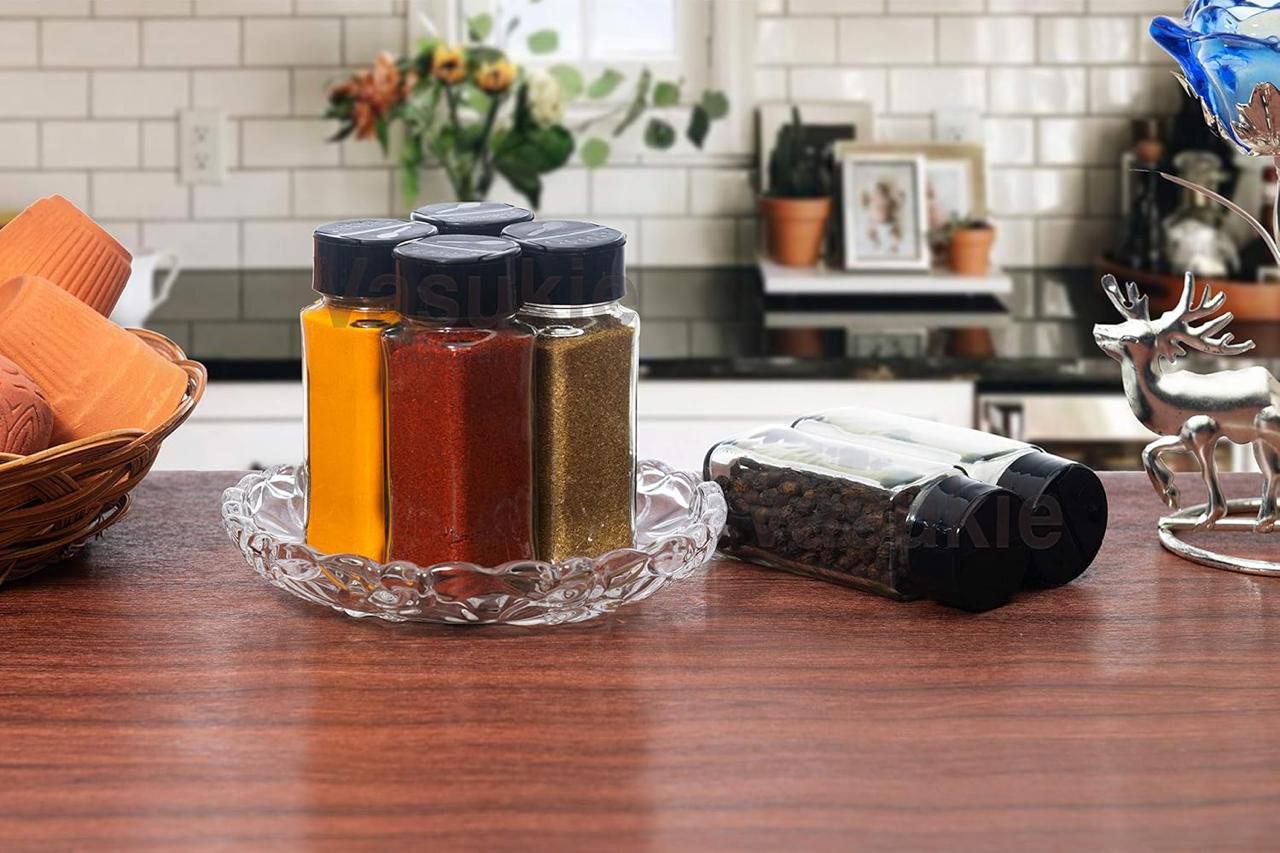 Vasukie Salt & Pepper Square Glass Spice Jar (Each Bottle 120ml) (6 Piece)